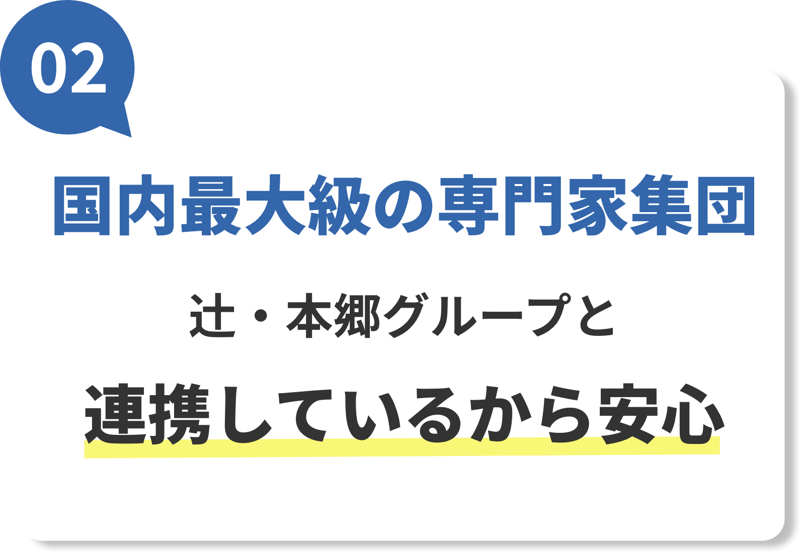 税理士法人」を中核とした辻󠄀・本郷グループと提携しています。辻󠄀・本郷グループの弁護士や司法書士・税理士との連携を活かし、共有名義不動産の積極的な買取を行なっています。一般の不動産会社では対応できない物件についても、柔軟に買取できることが当社の強みですので、たとえ他社に売却を断られているとしても、お気軽にご相談頂ければと思います。