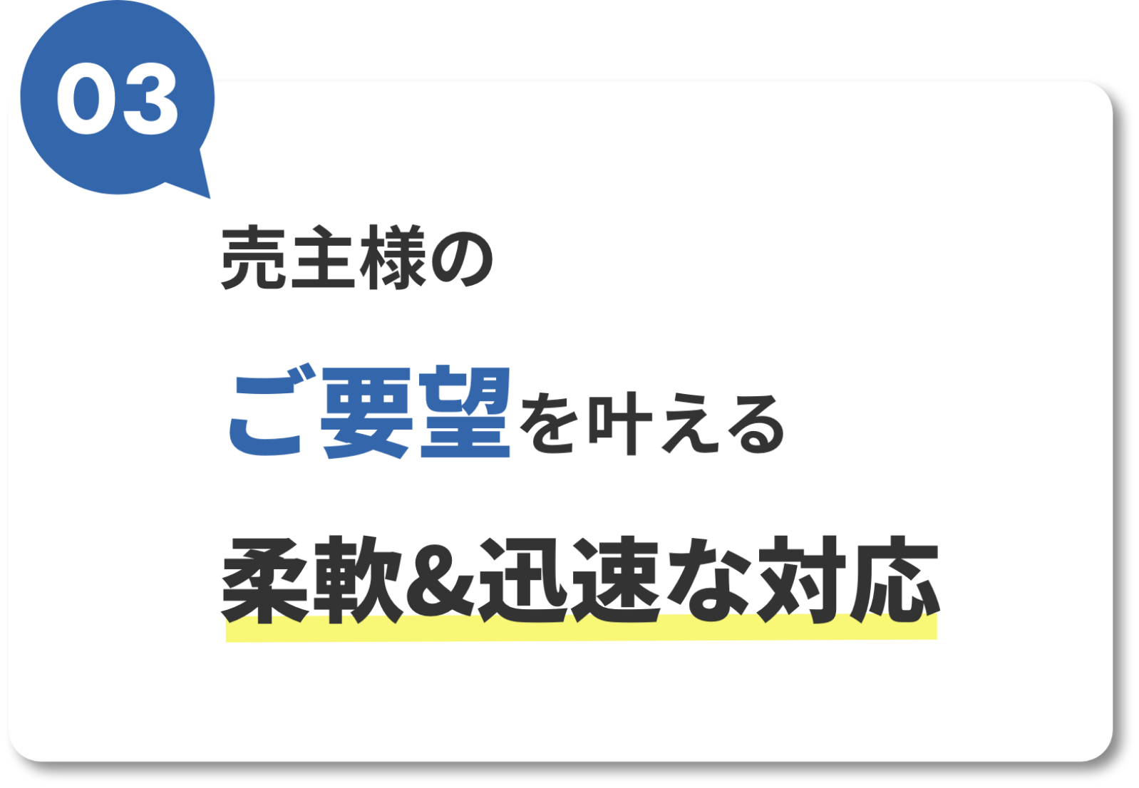 単に持分を買い取るだけは、必ずしも満足いく取引とはなりません。当社では、価格やスピード、さらにはトラブル防止の面でも最大限の努力をし、売り主様に対して誠実に向き合わせて頂くことで、お互いにとって納得のいく気持ちの良い取引を目指します。